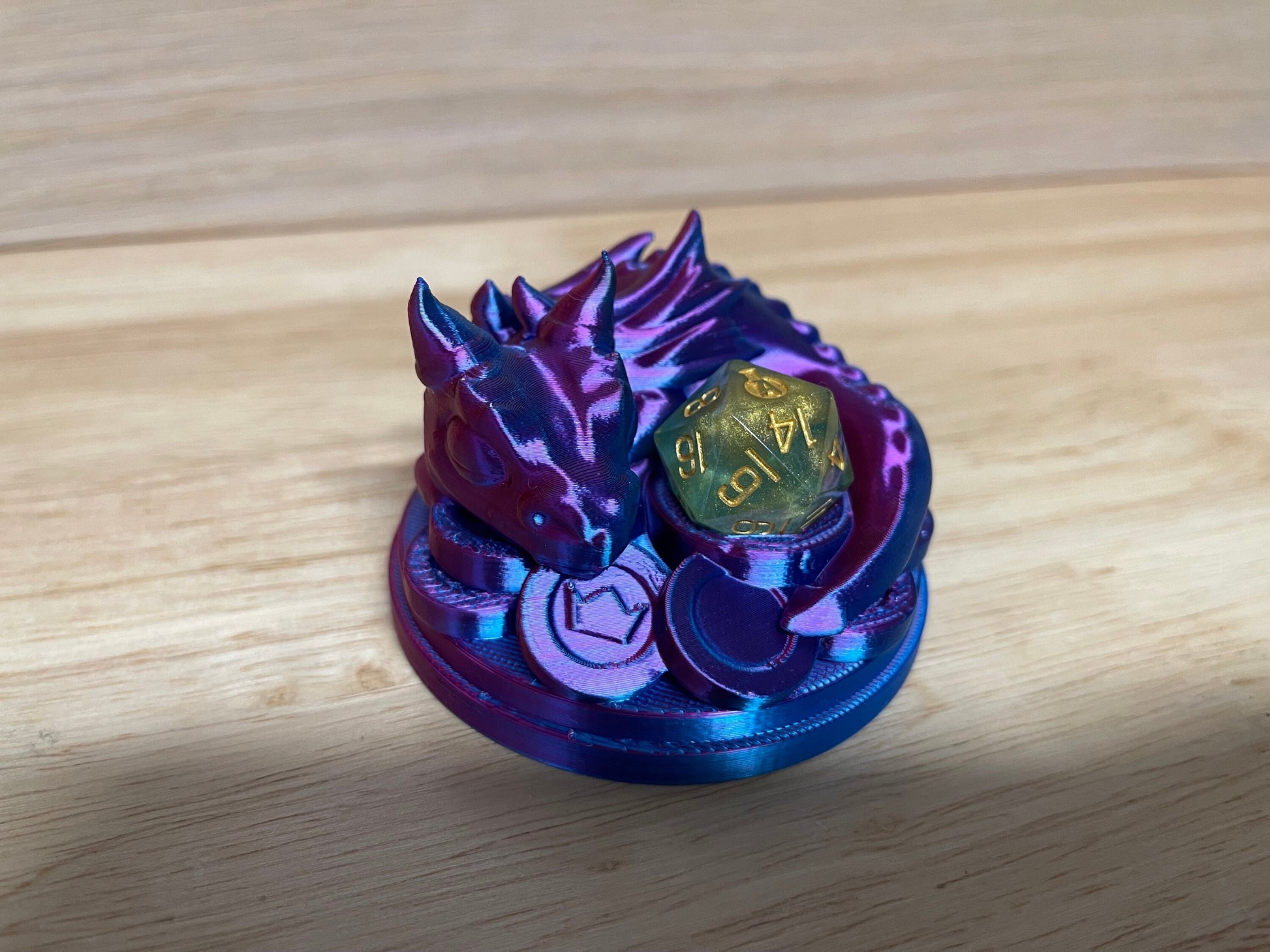 This cute little baby dragon will keep your most precious D20 safe among its bed of gold it lays upon.